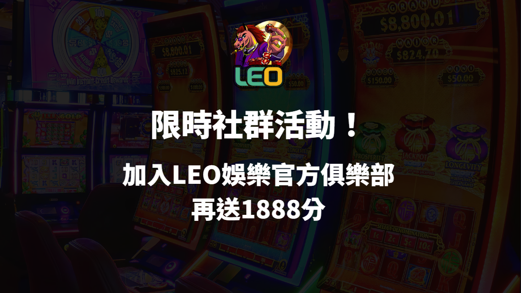 加入社群除了可以第一手掌握最新優惠資訊,還能直接獲得1888點紅利獎勵,堪稱LEO娛樂近期最值得參加的活動之一!