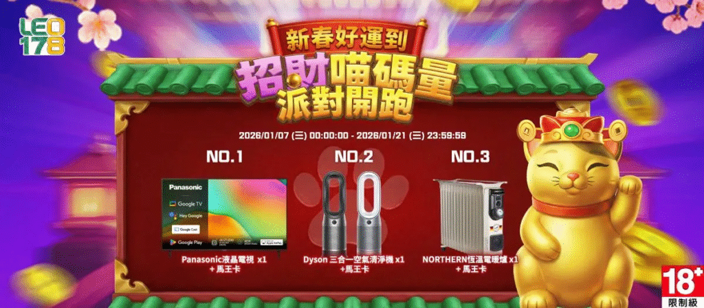 每到新春,玩家最期待的不只是遊戲刺激感,更是能「玩得盡興、拿到實體好禮」的娛樂城優惠活動。LEO娛樂城在新年期間強勢推出【新春好運到.招財喵碼量派對】限時活動,結合碼量累積機制與高價值實體獎品,打造真正有感的線上娛樂城優惠體驗。